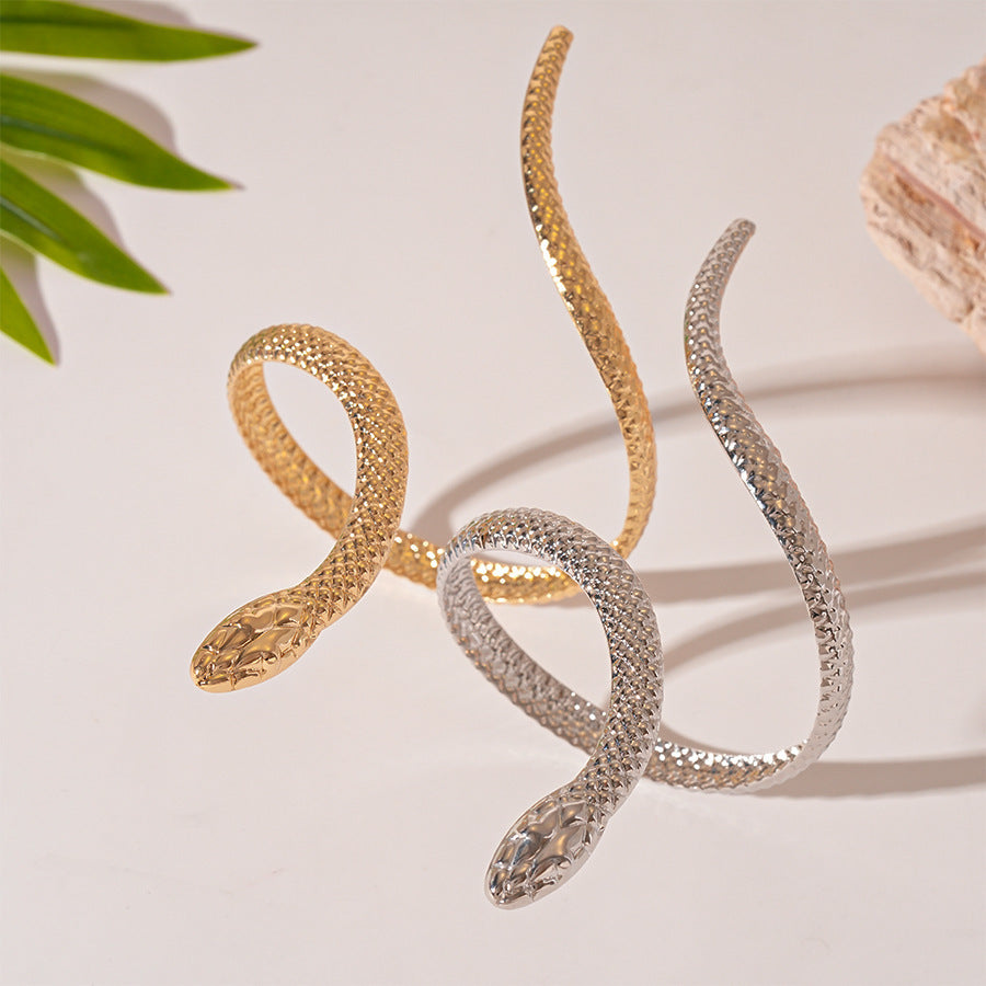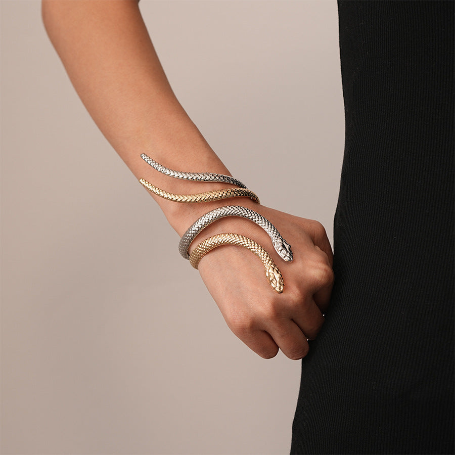 2-piece Set Exaggerated Twisted Winding Simulated Snakes Opening Ring Bracelet