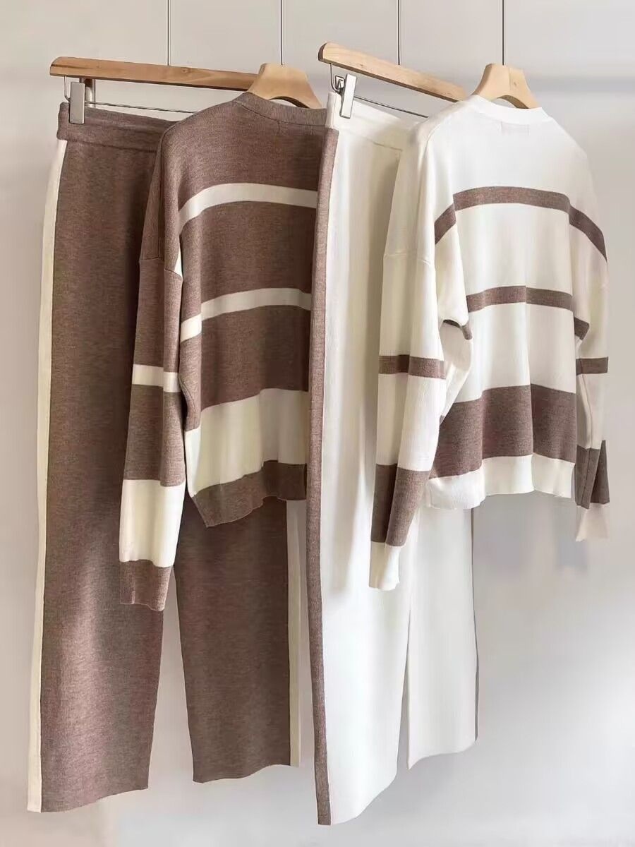 Autumn And Winter Leisure Striped Knitted Cardigan Top Wide Leg Pants Two-piece Suit