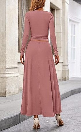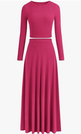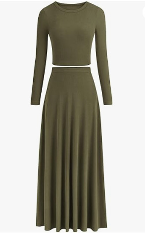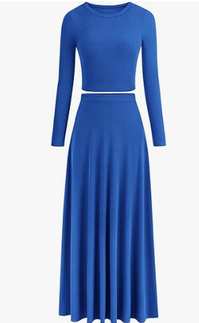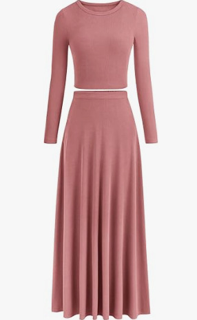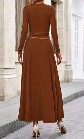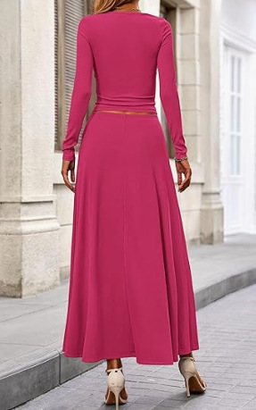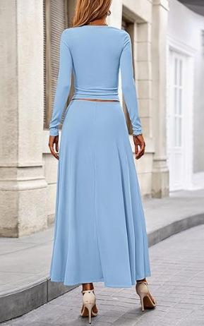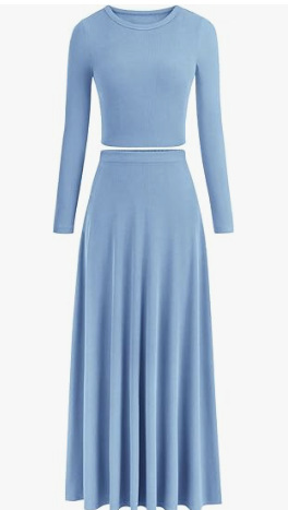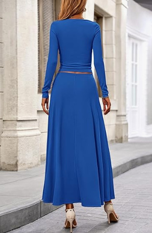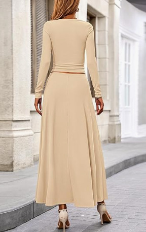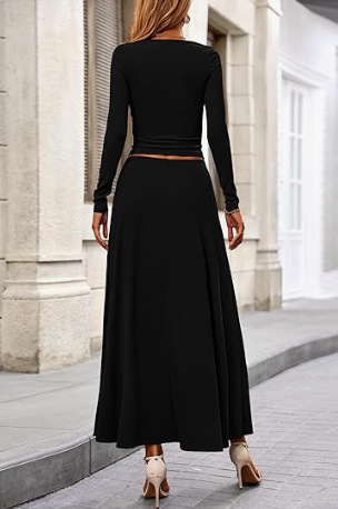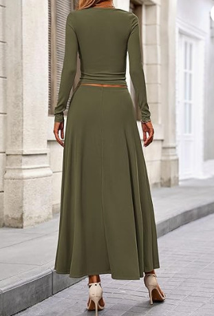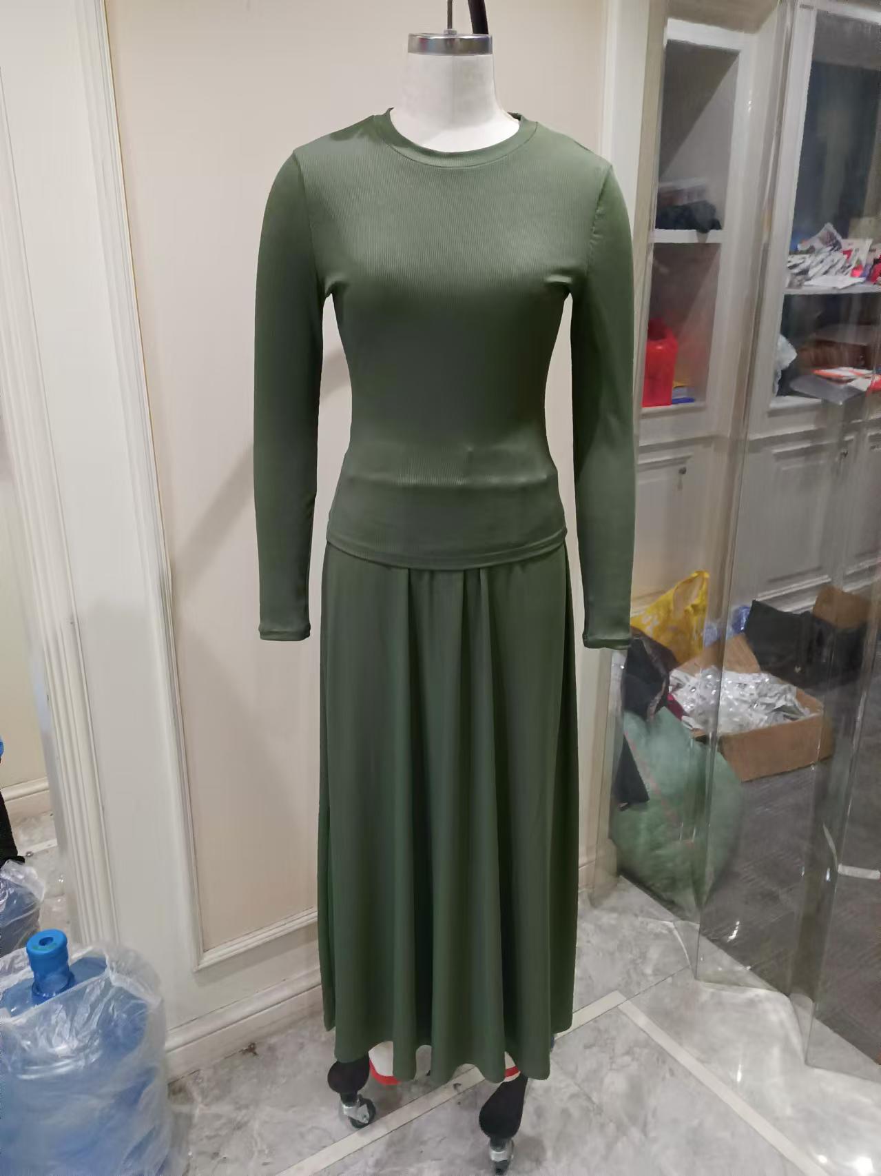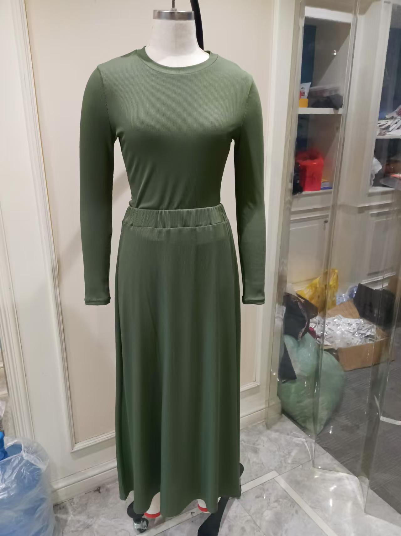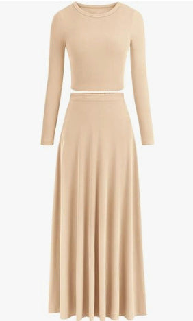 Casual Rib Knitted Long Sleeves Cropped Top Extra Long Piaise Skirt With Suit