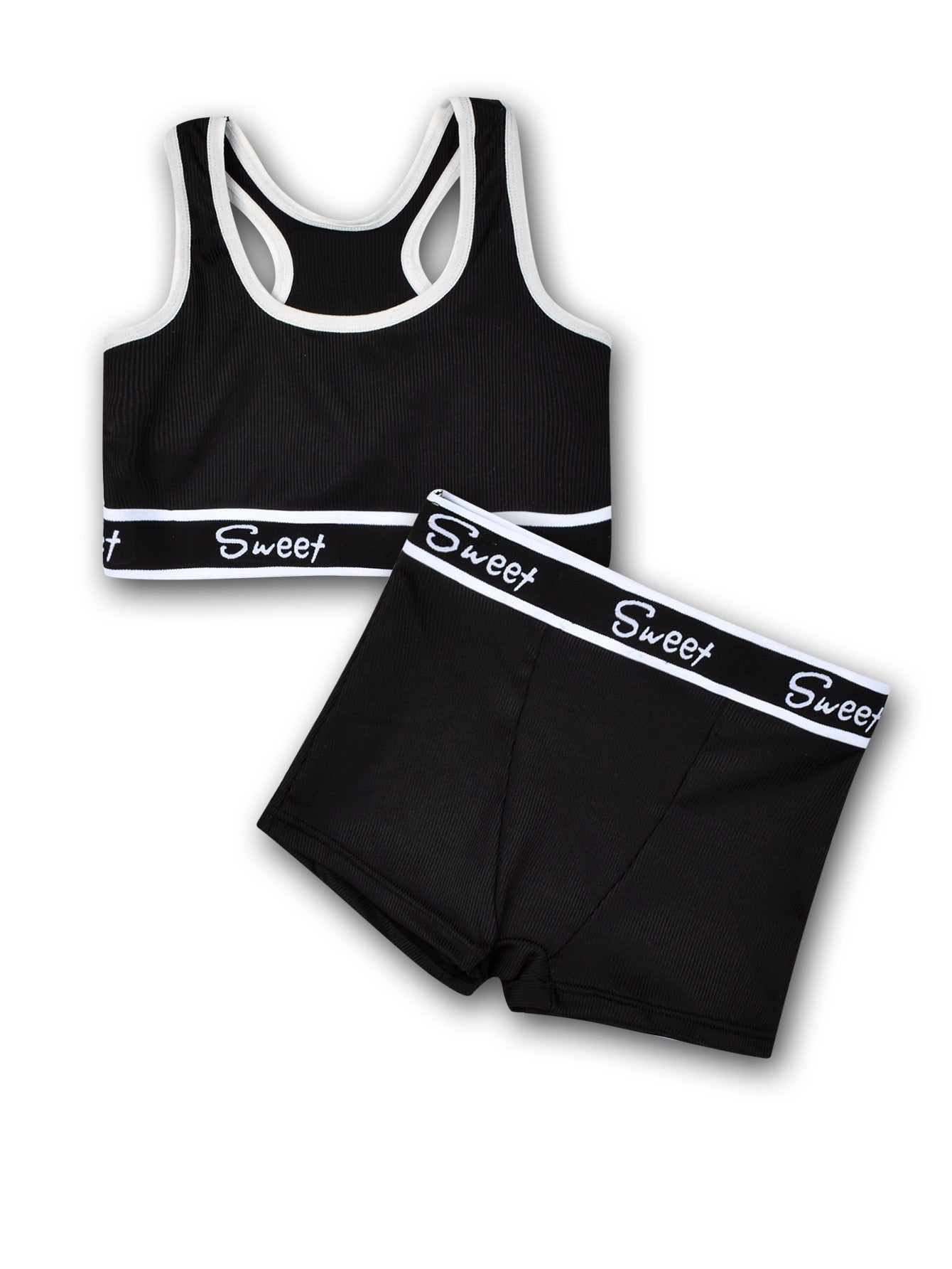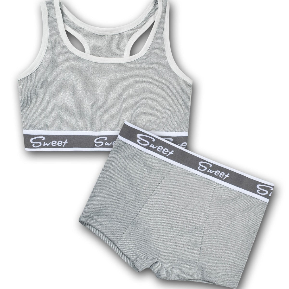Cotton Wide-brimmed Letters Mid Waist Girl Sports Underwear Suit
