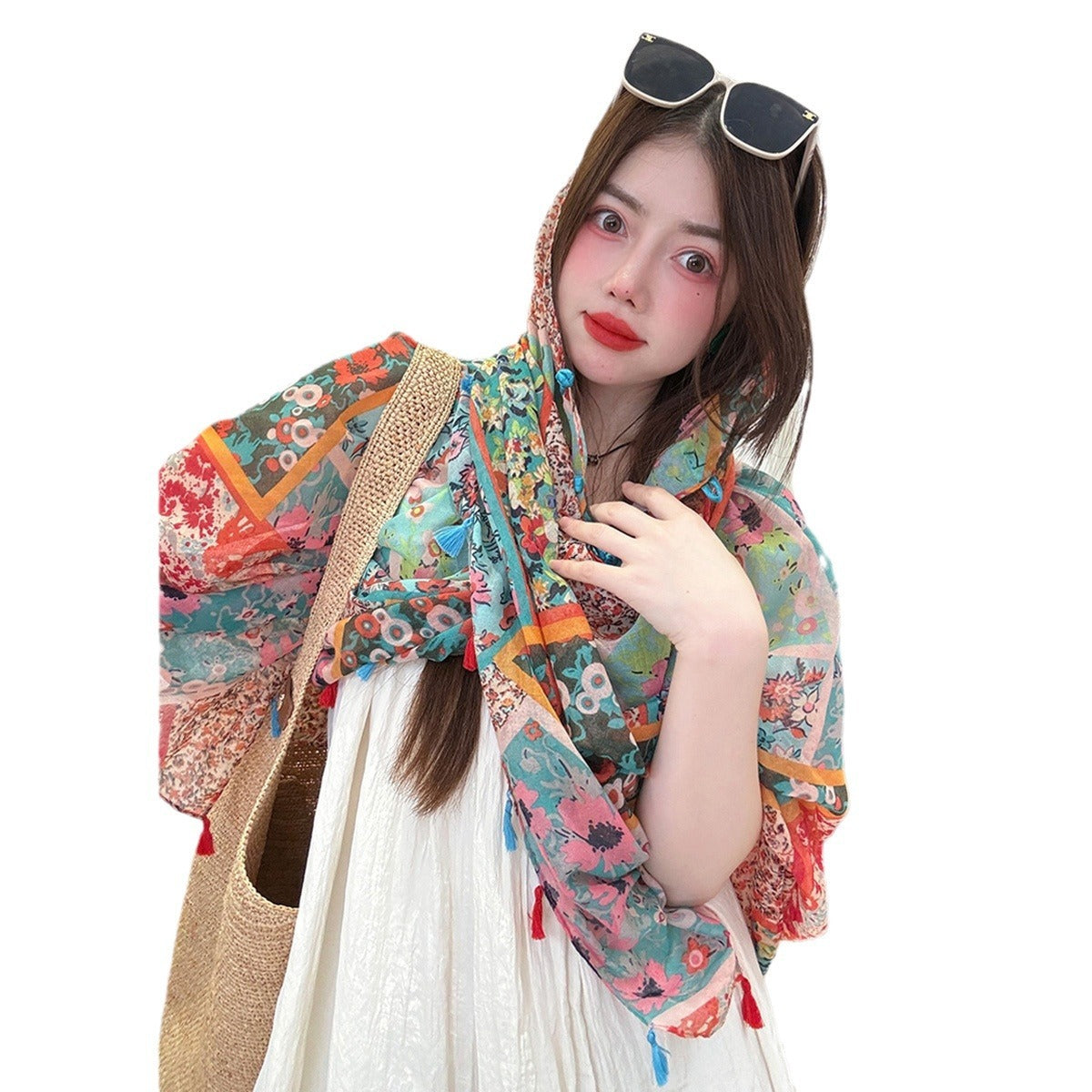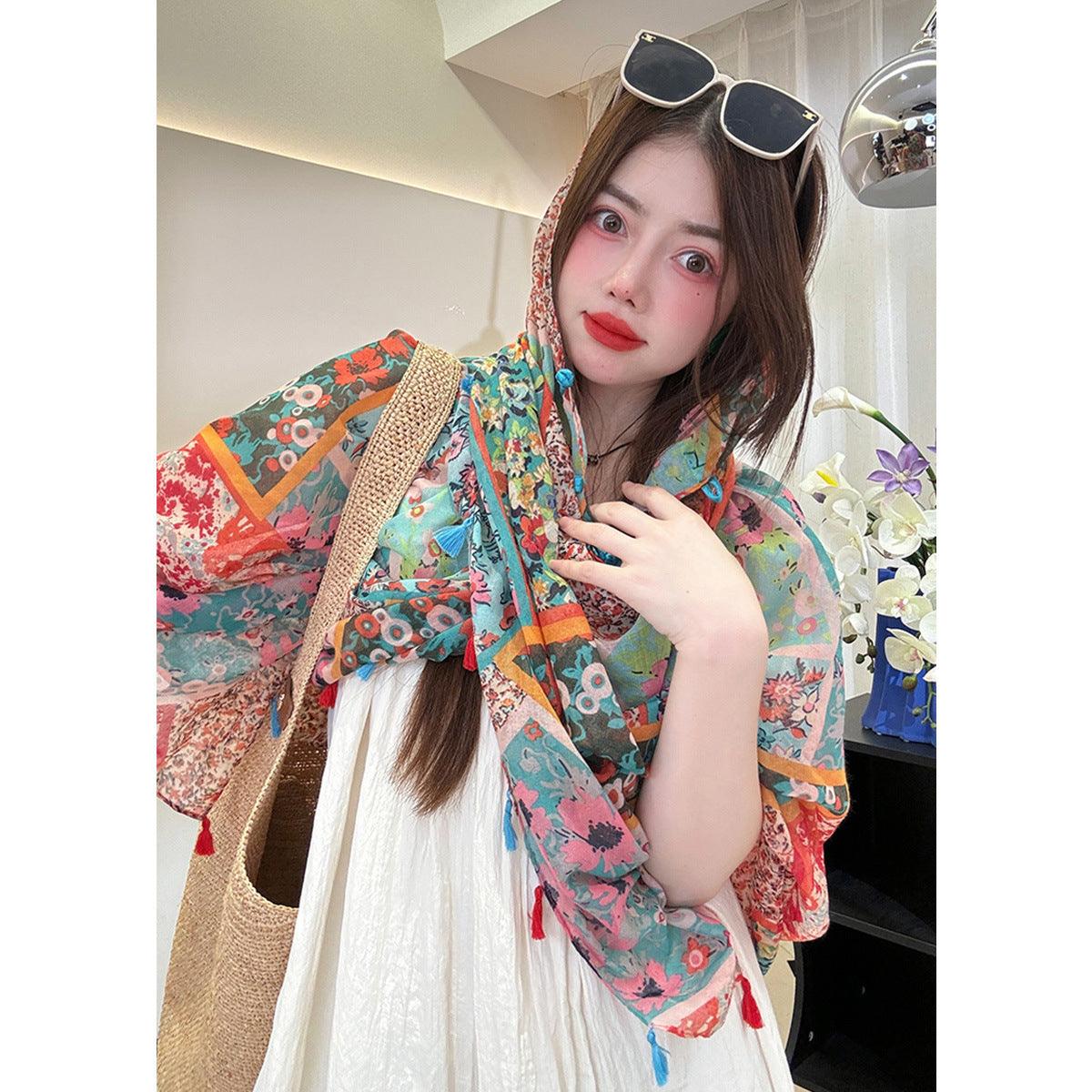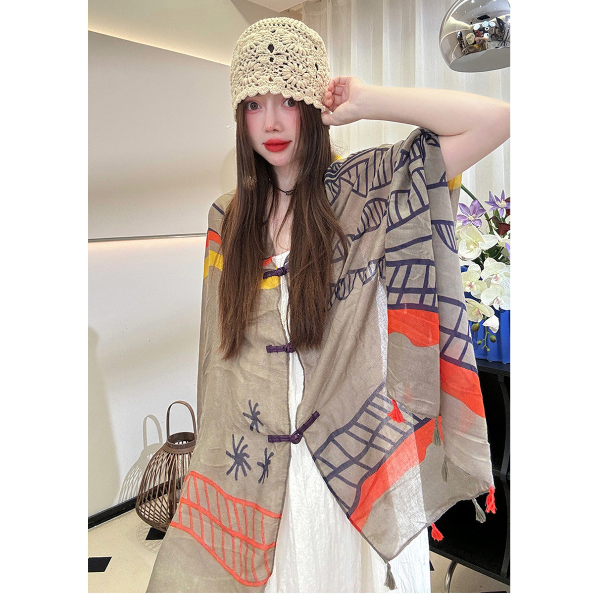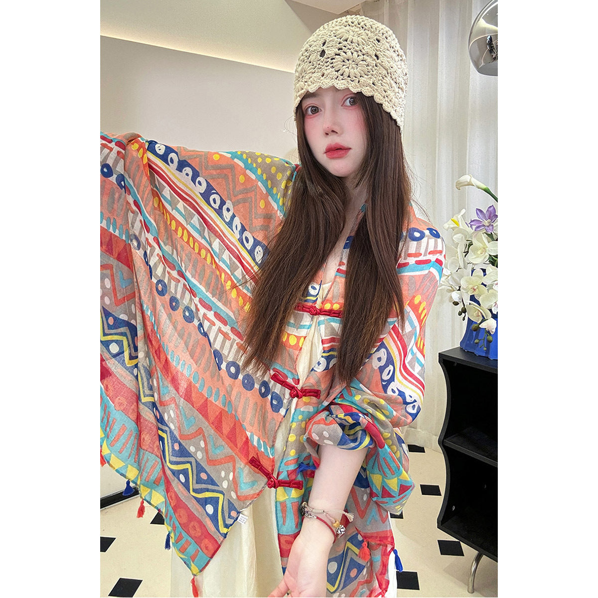 Ethnic Style Sunscreen Shawl Thin Retro Buckle Cloak
