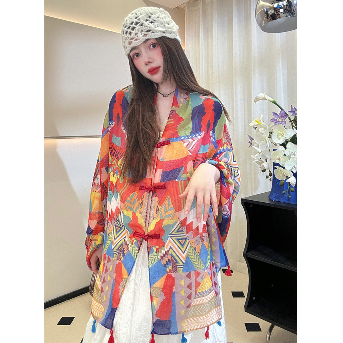 Color: ethnic style Chinese frog shawl-Tyland, ethnic style Chinese frog shawl-Kaleidoscope, ethnic style Chinese frog shawl-graffiti, ethnic style Chinese frog shawl-Tanggula, ethnic style Chinese frog shawl-colorful plaid, ethnic style Chinese frog shawl-Hoh Xil, ethnic style Chinese frog shawl-gray white polka dot, ethnic style Chinese frog shawl-red, ethnic style Chinese frog shawl-purplish blue cashew, ethnic style Chinese frog shawl-colorful