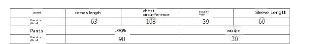 One size | 63 | 108 | 39 | 60 | 98 | 30 |