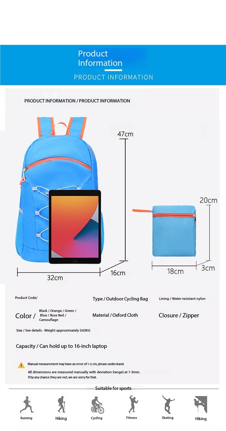 Multi Functional Outdoor Cycling, Hiking, Mountain Climbing And Cross-country, Sports Running Backpack, Lightweight And Breathable