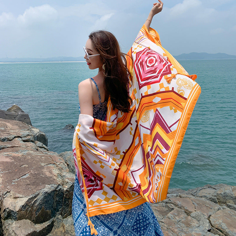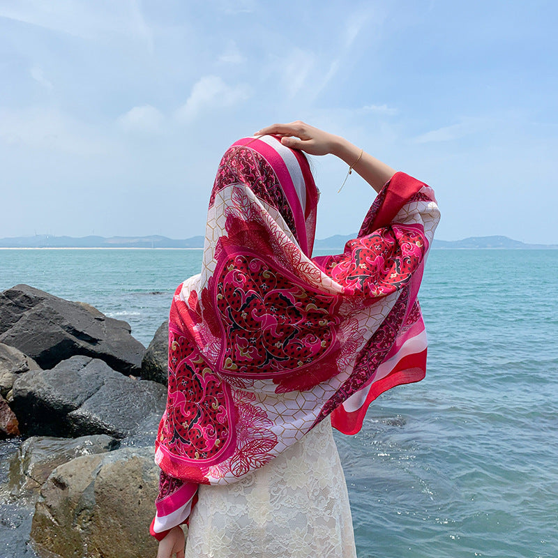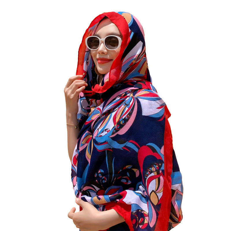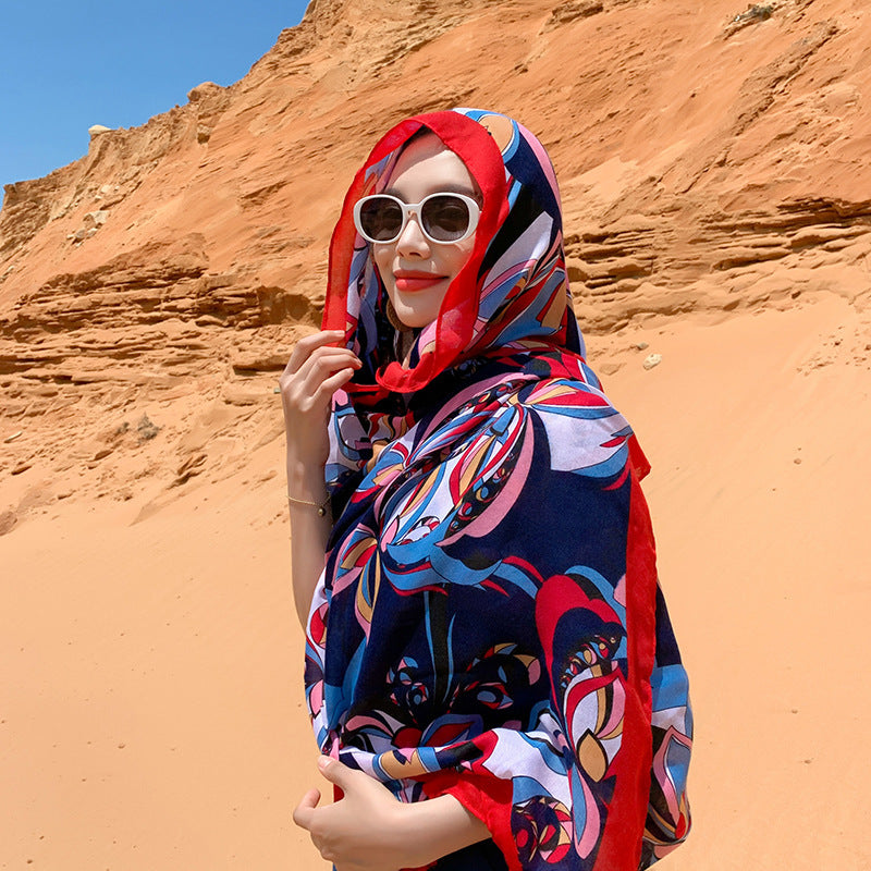 Multicolored Flower Pattern Shawl Sun-proof Scarf Mask