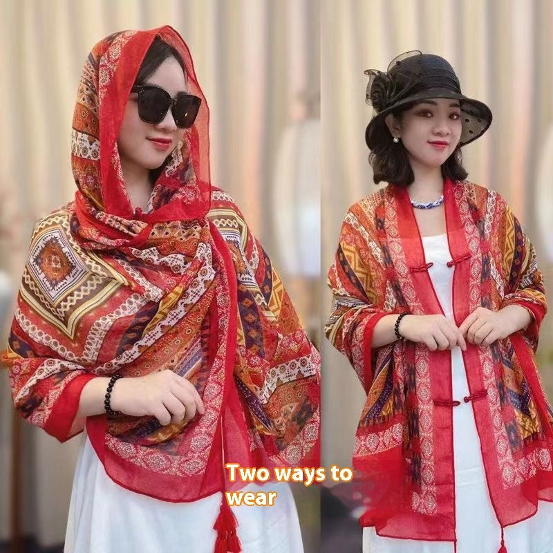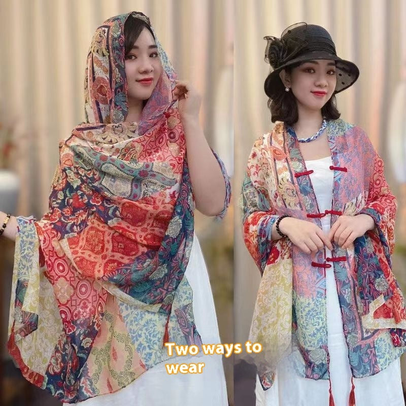 Popular Ethnic Style Shawl Summer Travel Wear Retro Buckle Sun Protection Coat
