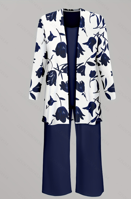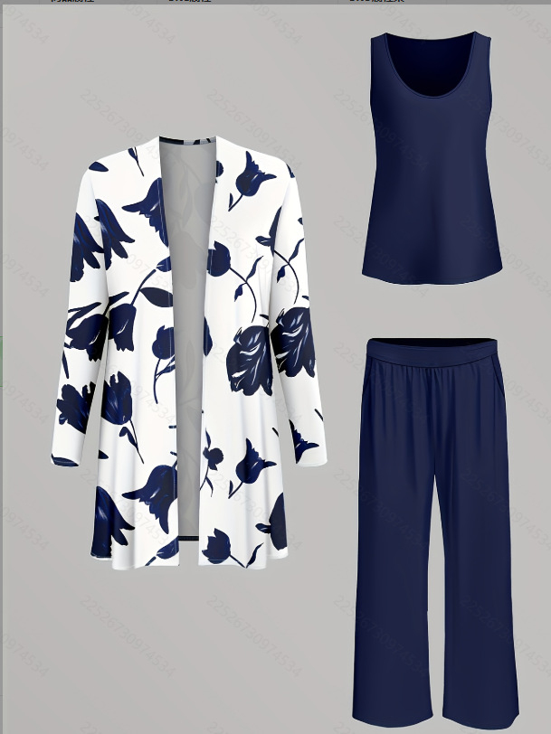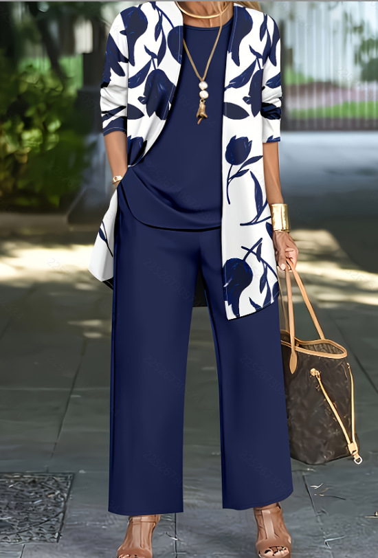Printed Design Five-quarter Sleeve Wide-leg Pants Three-piece Set
