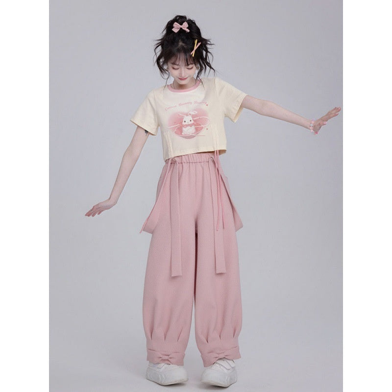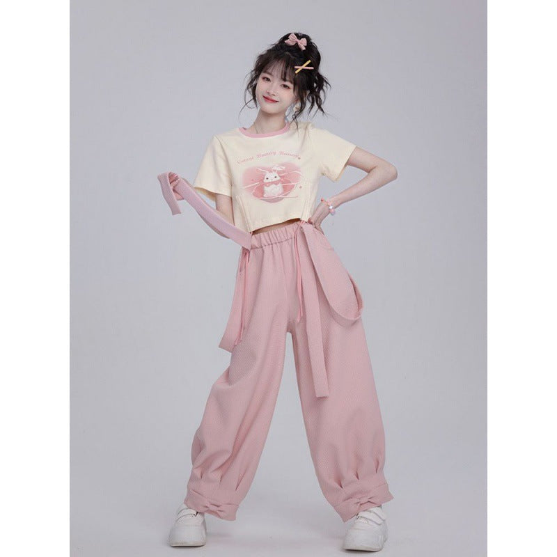 Pure Cotton Sweet Drawstring Women's Small Blush Rabbit Suspender Pants