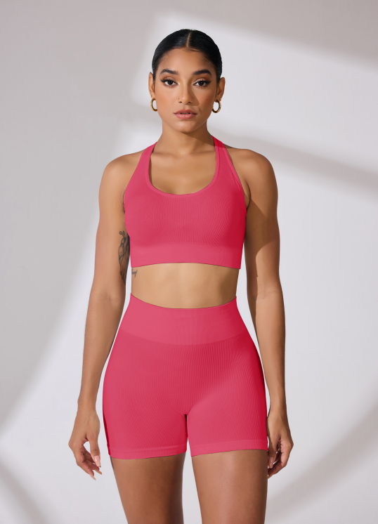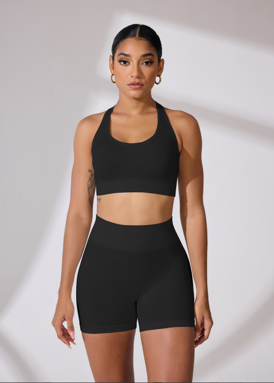 Round Neck Shoulder Strap Cross Bra Waist Shorts Suit