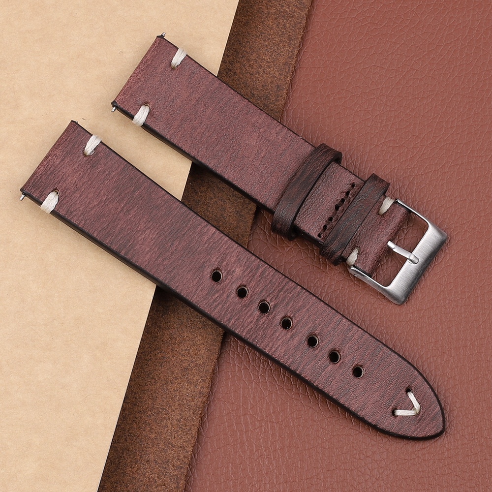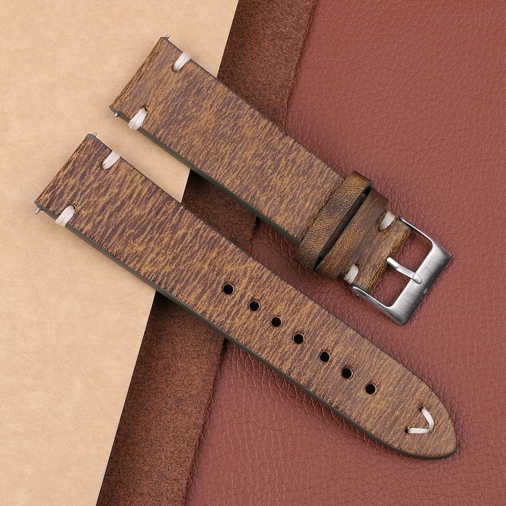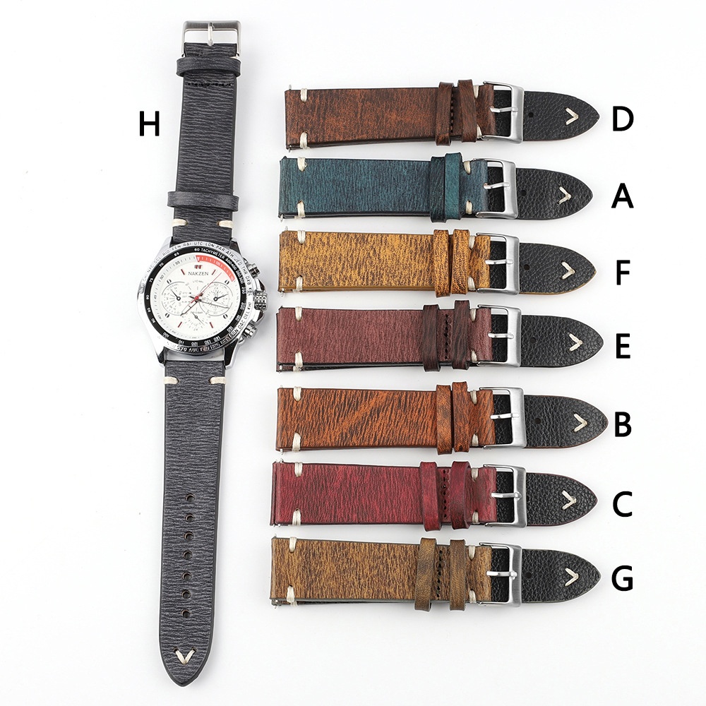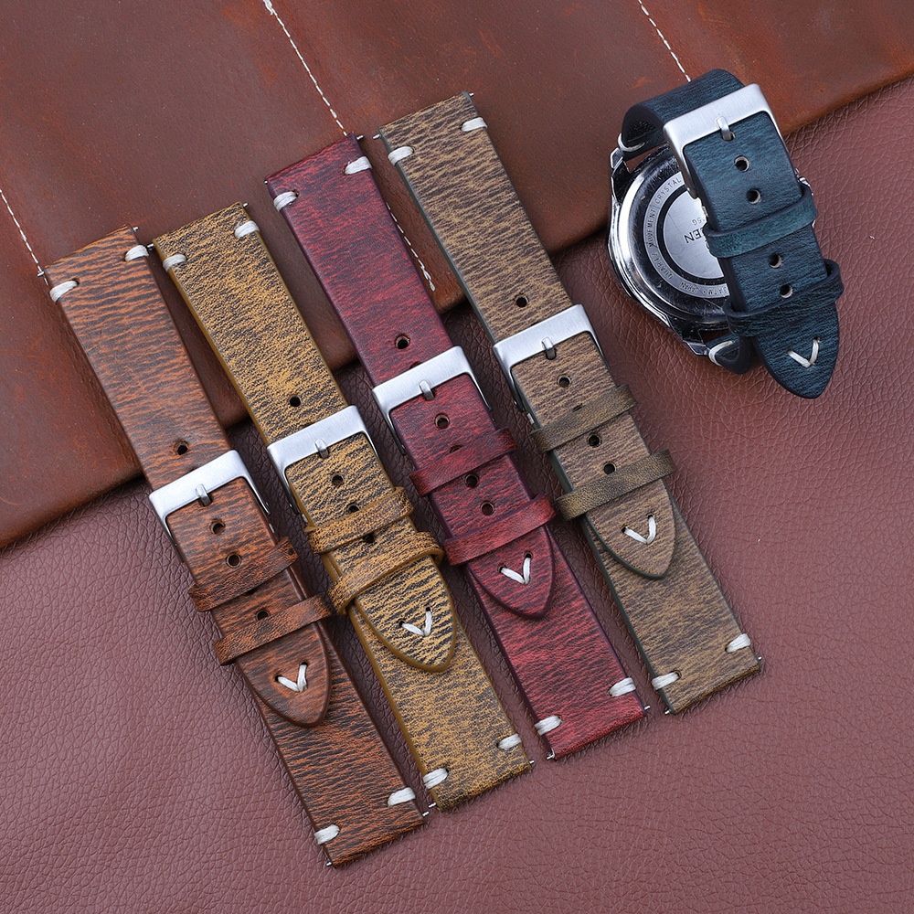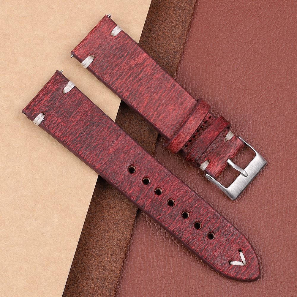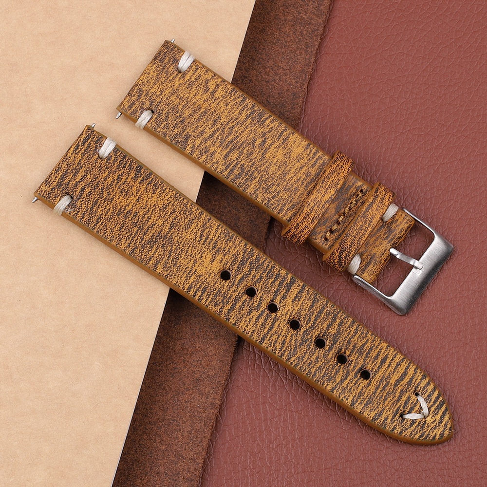 Versatile Retro Cowneck Patterned Leather Watch Strap