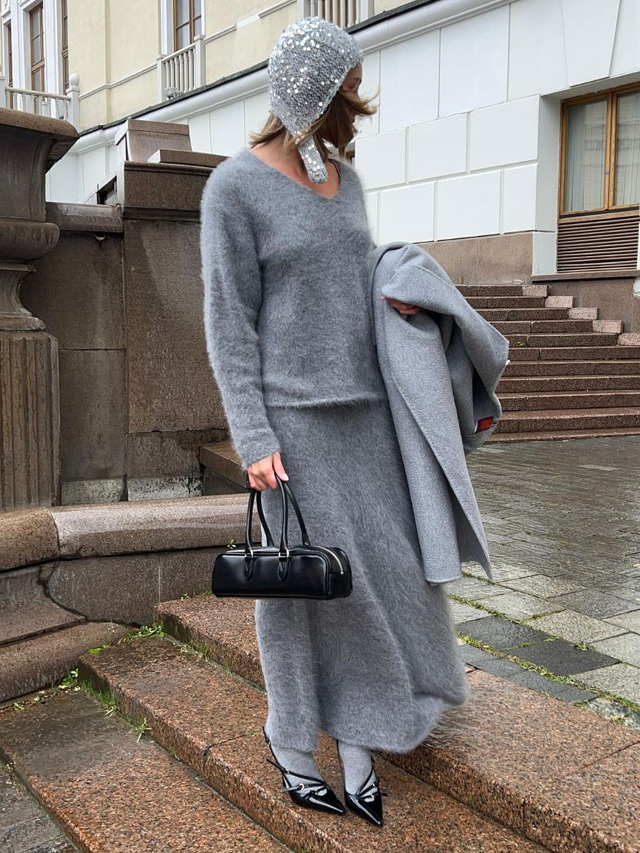 Women's Fashionable Knitted New Skirt Sweater Suit